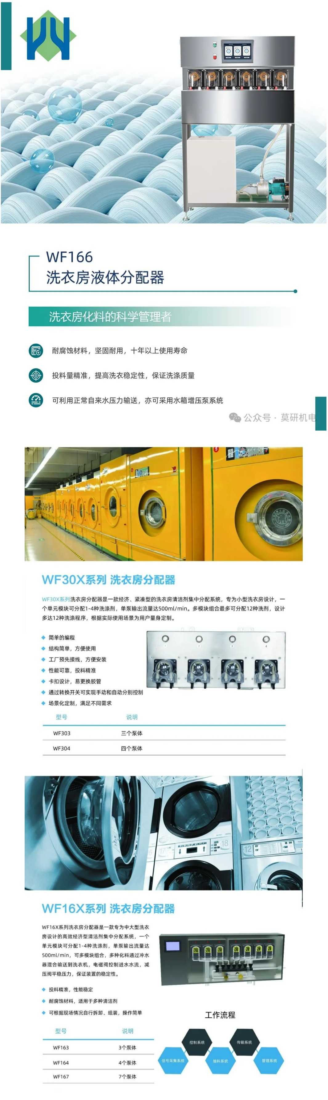 上海莫研機(jī)電設(shè)備有限公司成立于2013年,專業(yè)生產(chǎn)液體自動化處理系統(tǒng)設(shè)備,專注為客戶提供智能洗衣清潔劑供料設(shè)備。主要產(chǎn)品有:液體洗劑 - 小流量2通道供液泵,4通道供液泵;大流量6通道、8通道供液系統(tǒng);粉體洗劑供料系統(tǒng);加藥除垢系統(tǒng);硬水軟化系統(tǒng)。產(chǎn)品具備數(shù)據(jù)統(tǒng)計(jì),遠(yuǎn)程操控,智能友好等特點(diǎn)。莫研機(jī)電每年進(jìn)行大量的新產(chǎn)品測試研發(fā),為客戶提供目標(biāo)導(dǎo)向型解決方案,為客戶節(jié)約成本、創(chuàng)造價(jià)值!